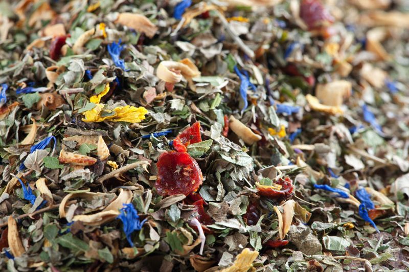 Brombeerblätter, Hagebuttenschalen, Orangenschalen, Apfelstücke, Sonnenblumenblüten, natürliches Aroma, Orangenblüten, Kornblumenblüten