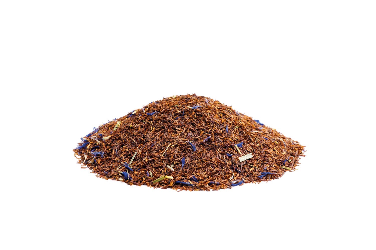 Rotbuschtee (90%), natürliches Orangen-Aroma, Zartbitterschokoladentropfen (Kakaomasse, Zucker, Kakaobutter, Emulgator: Lecithine), Zitronengras, Kornblumenblüten.