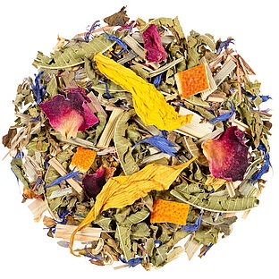 Lemongras, Verbenenkraut(15%), Fenchel, Basilikum, Orangenschalen, Rosmarinblätter, Silberlindenblüten, Rosenblütenblätter, Lavendelblüten(2%), Kornblumenblüten, Sonnenblumenblüten