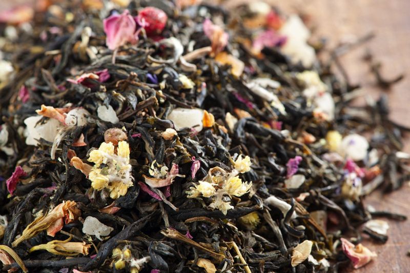Zutaten: Weißer Tee Mao Feng, Ananas (Ananas, Zucker), Papaya (Papaya, Zucker), Mangostücke (Mangostücke, Zucker), Aroma, rote Johannisbeeren, Rosenblütenblätter, Erdbeerstücke, Jasminblüten, Malvenblüten, Katzenpfötchenblüten